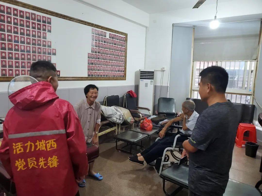 左一为王雪萍劝导社区里的老年人去避灾点。