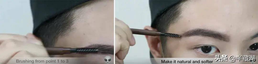 他这对毛毛虫似的眉毛并不是天生的,而是历程修理后,用笔涂出来的。