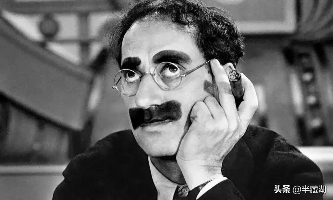 他是Groucho Marx,上个世纪初至中后期的笑剧演员,他用宽且浓密的眉毛和胡髭加眼镜打造了我方的经典形象。