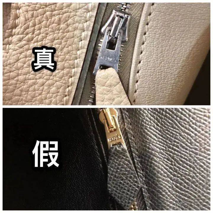 爱马仕的包包好多款式都是手工制作,厂标这一部分亦然。因为人为的要素,正品的厂标不一建都严丝合缝,然则字体一定刻印明显,没用晕染。仿品则反之。