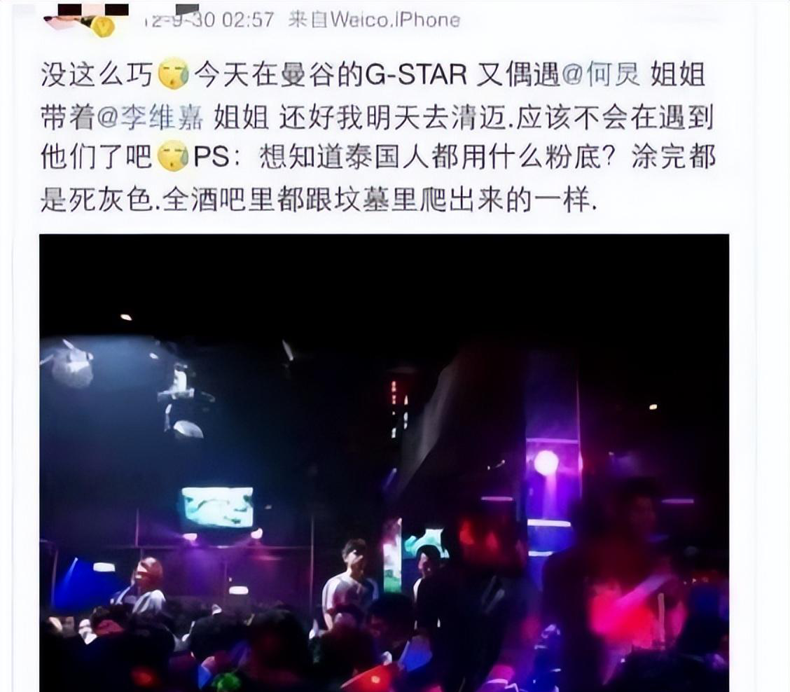 2012年,有网友在泰国同性恋酒吧未必碰到李维嘉
